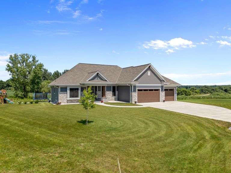 Exceptional, Custom 4-5 BD, 2.5BA Executive Ranch w/ exposed LL built by Alesci Homes has SO much to offer. Nestled on 1+ acres, this private/quiet cul de sac neighborhood is close to everything. From the moment you approach this Stunning 3 year old home, you will realize the Quality Build & Custom Upgrades. The Open Concept layout has a huge Great Room w/ 11ft ceilings, a custom oversized FP & massive windows overlooking the backyard. The Kitchen is a Chef's Dream w/ Custom White Cabinetry, a spectacular island, elite appliances, huge dining area & a separate walk-in pantry w/ electrical. Primary BD w/ ensuite & beautiful views, 2 BD's, relaxing sunroom & laundry w/ planning office round out main floor. Finished LL has Family room, a 4th BD & Office (or 5th BD), along w/ a powder room.