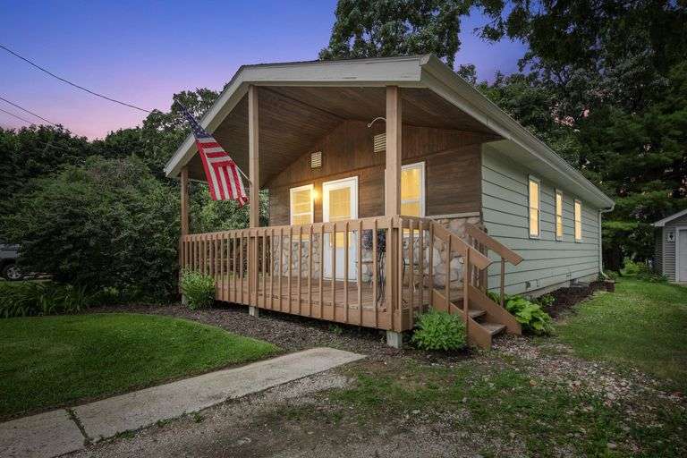 Discover this inviting 2-bedroom, 1-bath ranch-style home in the highly desirable Town of Merton. Situated on a low-maintenance 0.093-acre lot, this home features a charming front porch and an efficient single-level layout. The kitchen includes a tiled floor, range, and refrigerator, while the carpeted bedrooms are brightened by ceiling lights, creating a warm and comfortable feel throughout. The full basement offers tall ceilings and excellent potential for storage, a workshop, or future finishing. Recent updates include a new electrical panel and a recently serviced oil furnace. Located in Arrowhead District, just across from North Lake School and within its respected district, this property combines small-town charm with everyday convenience. Property is being sold ''AS IS''. Previous house burned down before 1940s and was rebuilt, exact rebuild age unknown. Survey is dated 1953.