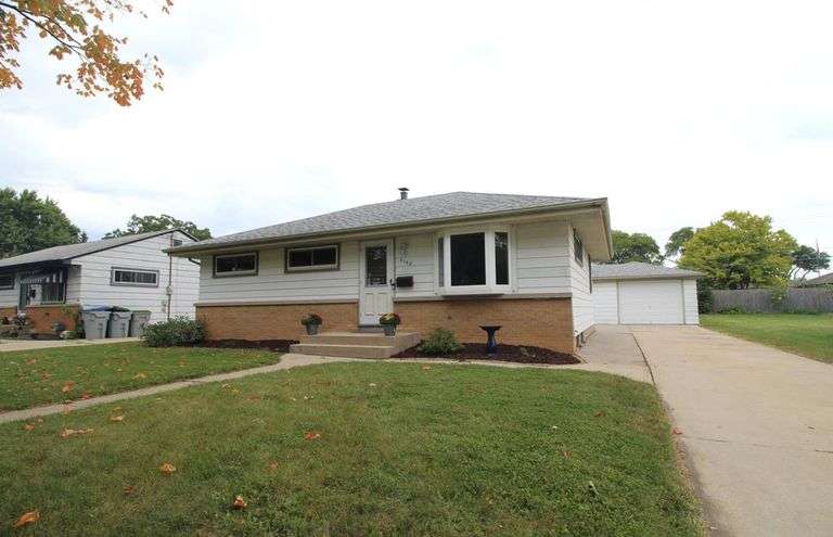 Nicely updated, maintenance free exterior, 3 bedroom, 1 bath with 2.75 car detached garage located in a quiet neighborhood. Home features eat in kitchen, newly refinished hardwood floors, freshly painted throughout, partially finished dry lower level with bar, partially fenced in back yard with playset for the kids and an updated bath. Washer and dryer included. Located 2 blocks west of Whitman Park. Close to restaurants, shopping and easy access to HWY 43. Move in condition.