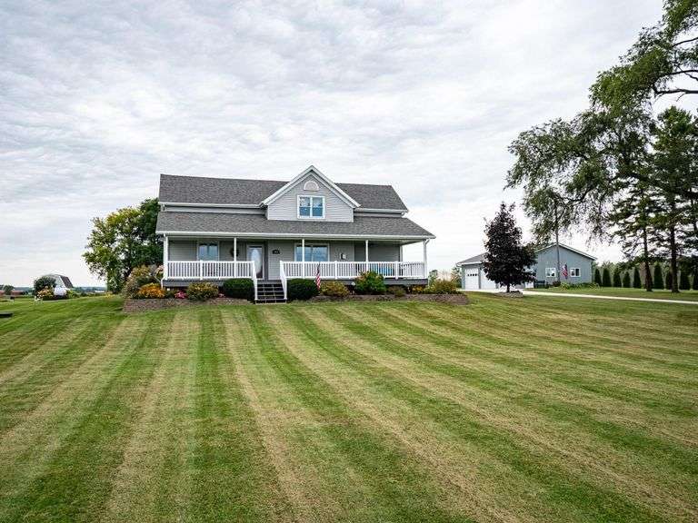 Quality and craftsmanship throughout this wonderful 3BR, 2BA farmhouse style home, re-built from top to bottom, on picturesque 5 acre parcel, with stunning country views. Gorgeous eat-in kitchen with loads of cabinet and counter space, open to living room with gas fireplace and vaulted ceiling. First floor bedroom and full bathroom, plus HUGE main floor laundry/mudroom. Upstairs features a flex space loft area, two more bedrooms and another full bathroom. Large 2.5+ car attached garage PLUS fantastic 3.5 car, heated, detached garage with 220, and additional large garden shed. Don't miss this spectacular property!